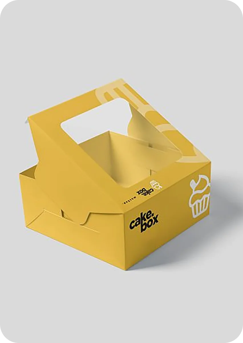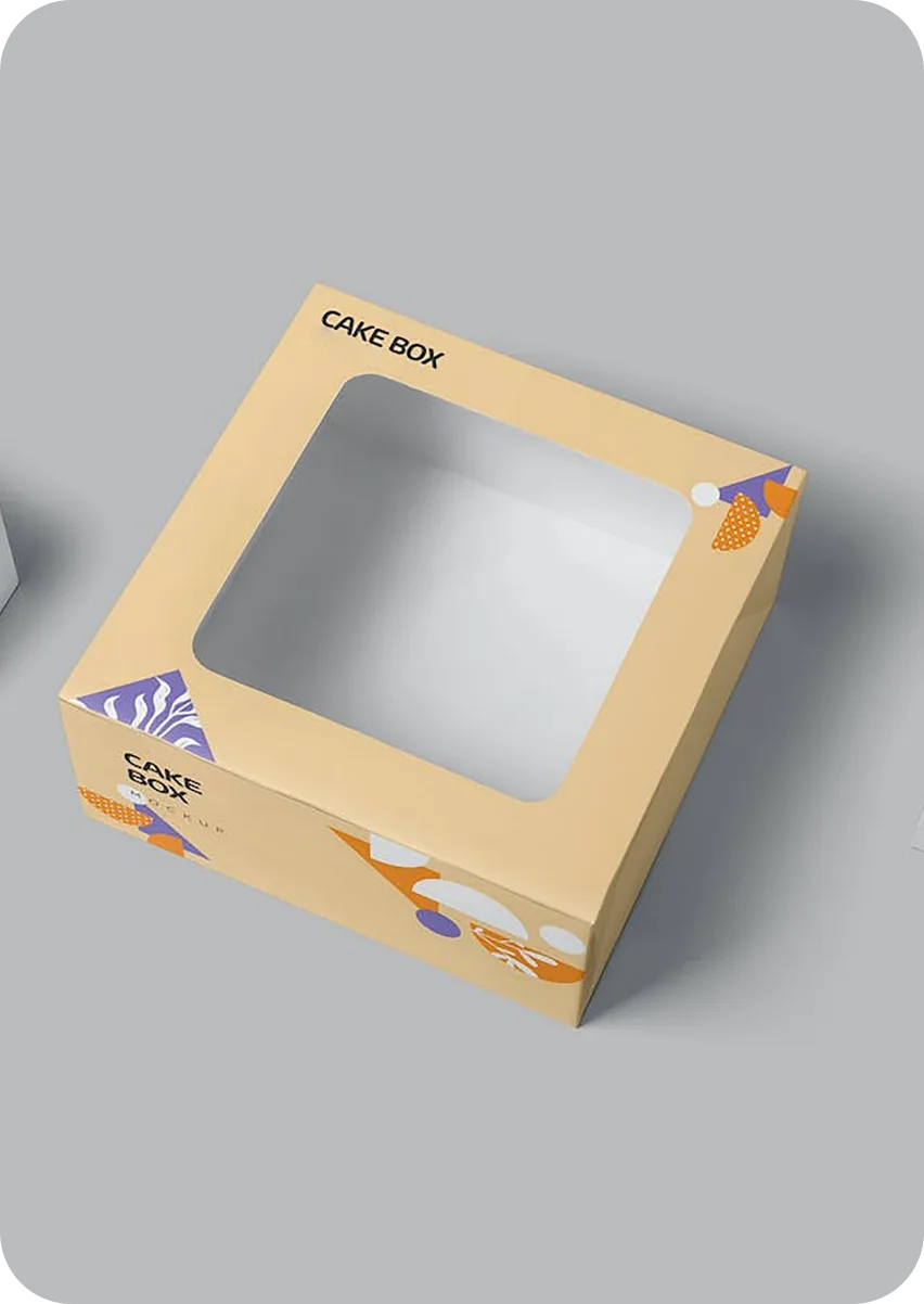 Cakes need to be sold with maximum freshness. Also, the presentation matters as customers will look forward to it. Upsurging your product's freshness through sleeve boxes, gable boxes, tuck-top auto-bottom STE boxes, and boxes with lids can be ensured. From seamless printing and high functionality, we ensure that these custom cake boxes inspire your customers with presentable custom printing.