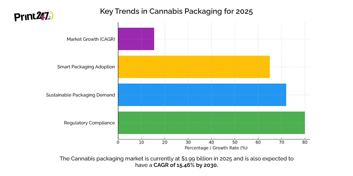 CBD packaging follows the yardsticks, giving personalized packaging that attracts customers from afar. In today’s packaging world primarily there are many uses like delivery, gifts, and others. Packaging is useful for your brand so you can get your ultra-green branding to the next level. The Cannabis packaging market is currently at $1.99 billion in 2025 and is also expected to have a CAGR of 15.46% by 2030.
