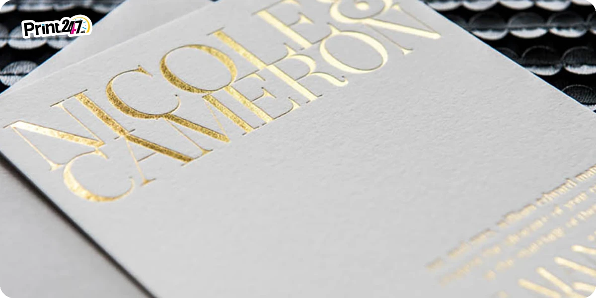 If your goal is to emphasize the typography in branding, you could employ foiling. This is a special kind of printing that involves applying the foil with a pigment or metallic material by using pressurization or heat.