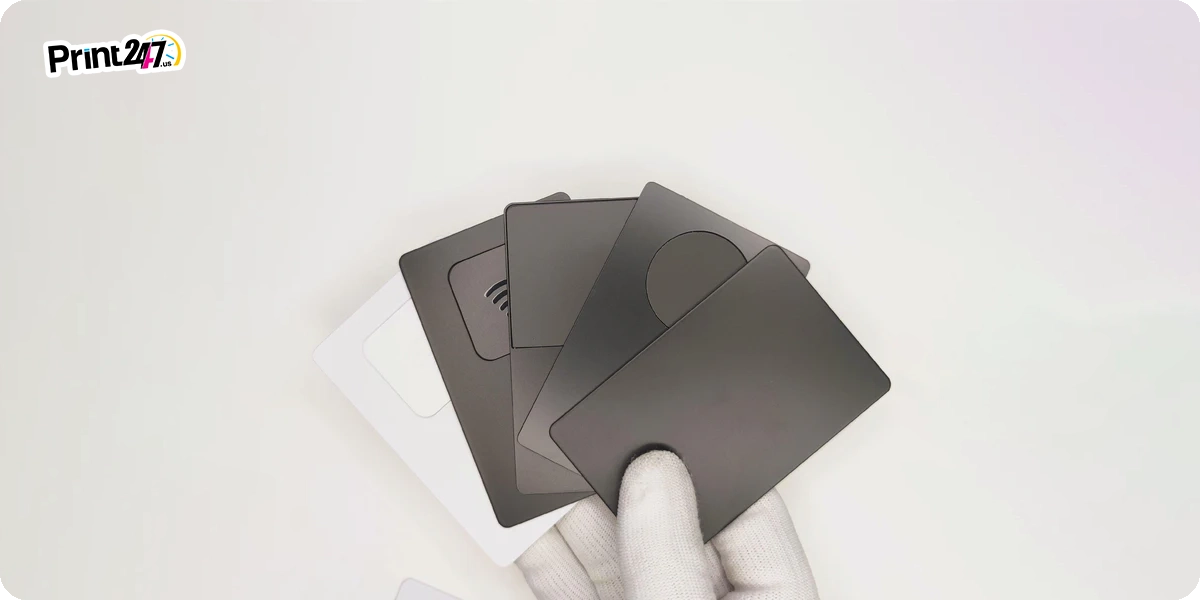 NFC cards are generally made of PVC (plastic). The choice of metal or plastic is contingent on your needs. Decide on your top priorities, premium cost or high quality, and choose the appropriate material. We make NFC cards for the higher standards we at Print247 also make standard business cards with the materials you choose.