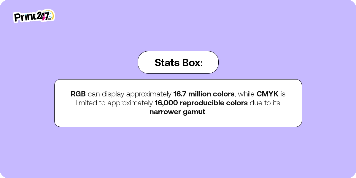 RGB is for screens that make light. CMYK is for printers that use ink. The difference between CMYK and RGB is the main reason for showing dull colors on print. Colors look brighter on screens because light mixes add up, while inks absorb light. For print, convert files to CMYK, use ink-safe colors, and request a proof to keep brand colors close.