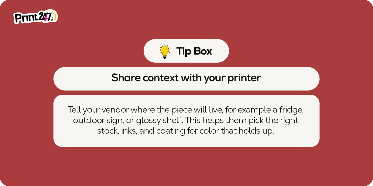 When a design moves from light to ink, a few things change. The press, the paper, the finish, and even your file settings affect the result. If you plan for these, you cut color surprises and avoid reprints.