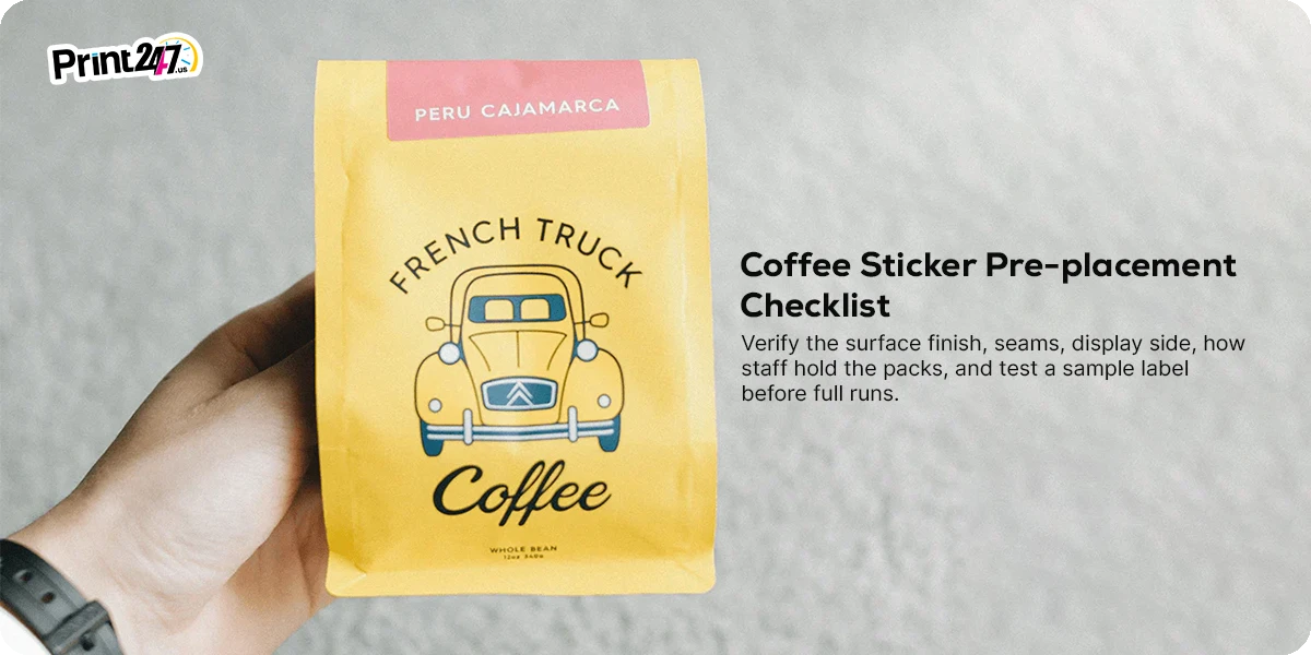 Every coffee package gives you a different space to place a sticker. The type of pack, the finish, and the seams all change what spot is best. Look at your package and note the largest flat panel, the zipper or seal, and how it will be handled in a cafe or on a shelf.