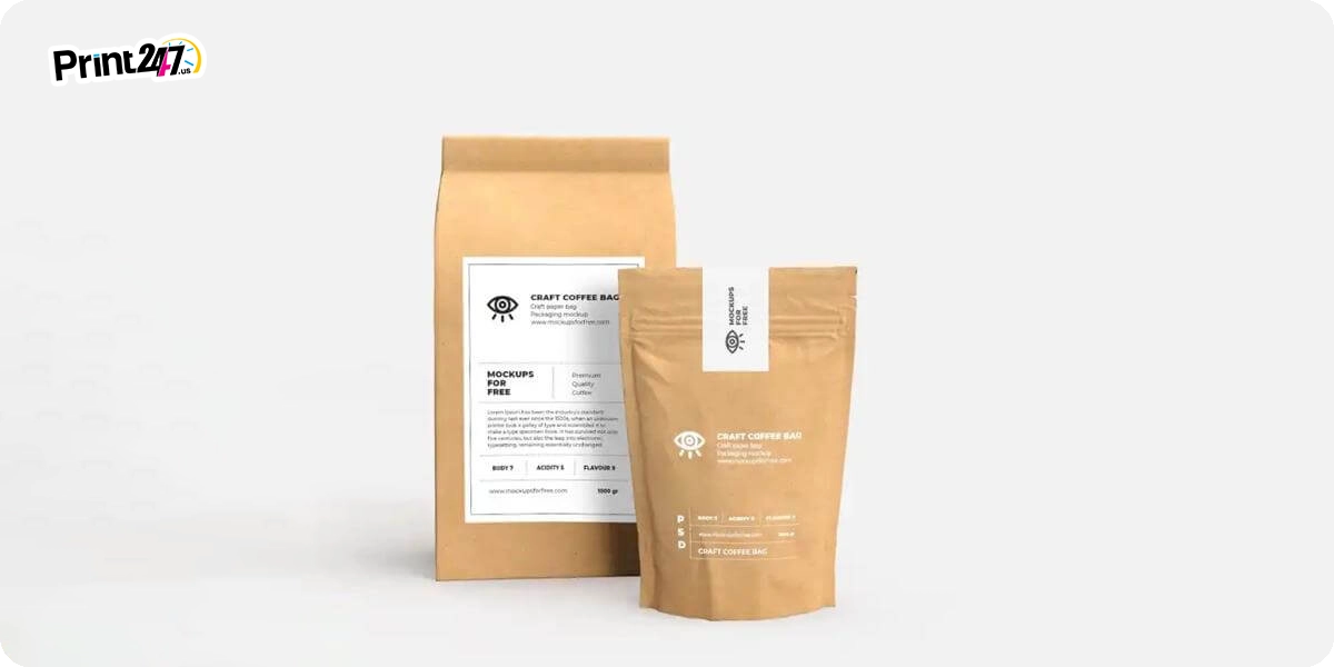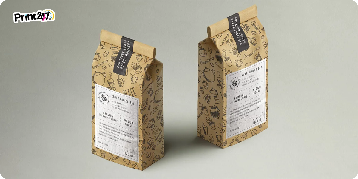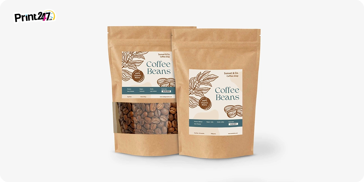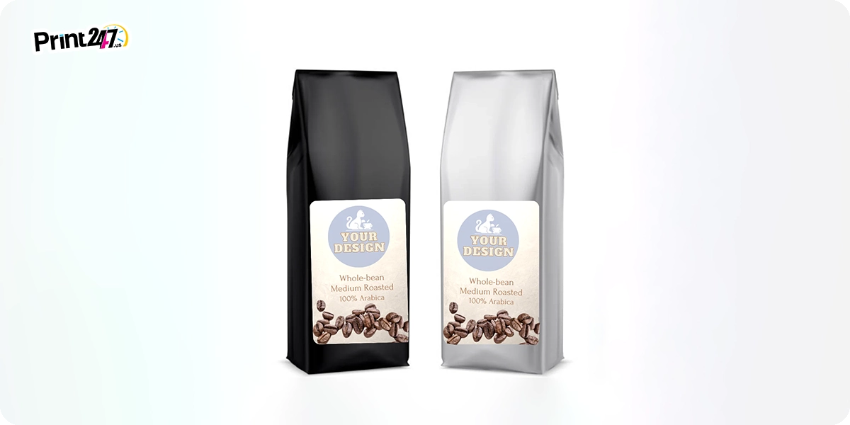 If you need reliable coffee packaging, labels, stickers, order now from Print247. We are a custom printing and packaging manufacturer based in Texas. We offer free design assistance, eco-friendly options, fast shipping, and physical samples so your team can test sticker placement before production begins. Your wholesale customers can benefit from sample testing by decreasing returns, increasing reorders, and building a stronger brand.
