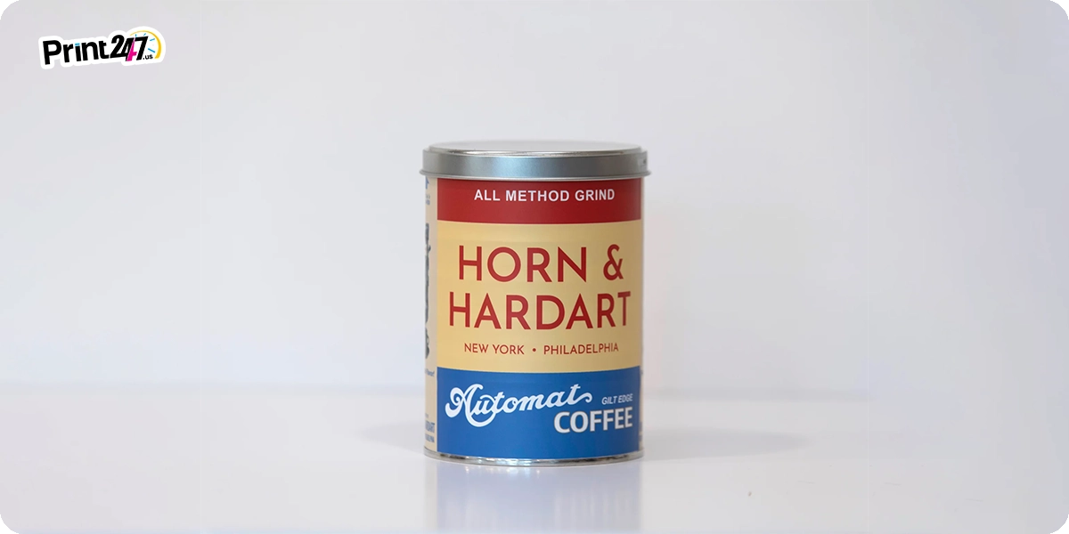 Metal coffee cans give a smooth, rigid surface. Apply the main label to the body aligned with the front. A small date or batch sticker should be added to the lid. Clean the metal first to remove oils and fingerprints. If your label wraps around, make sure the logo is aligned perfectly.