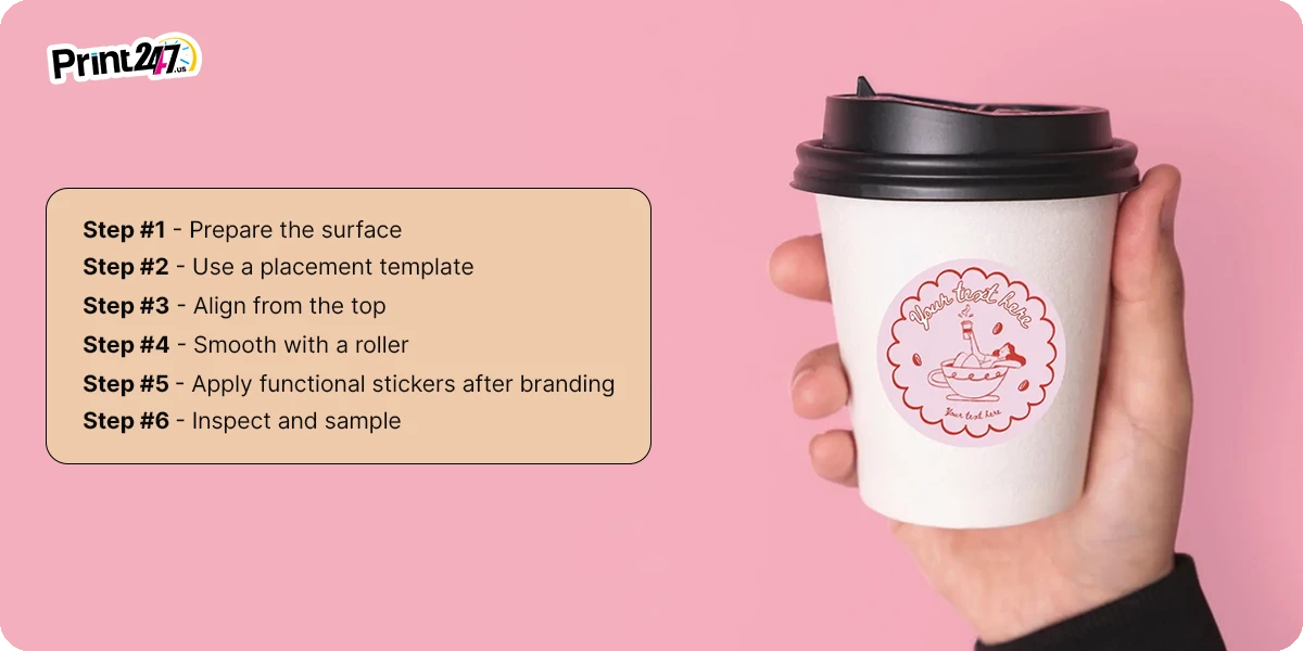 When applying, align the top edge of the sticker first and lower the rest. This avoids bubbles and lets you correct orientation before sealing the edge. Aligning the coffee sticker from the top relates to visibility, aesthetic balance, and functional considerations.