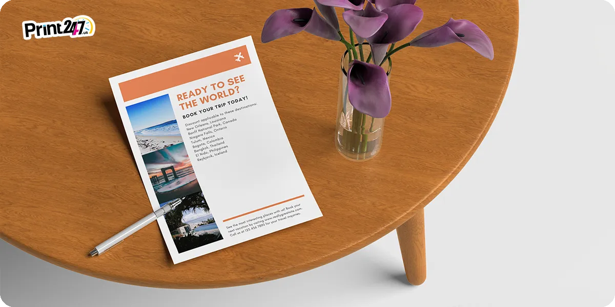 - Tri-Fold Brochure (8.5″ x 11″): This is the classic size. The paper is folded into three sections. It is compact, easy to mail, and fits in standard rack displays at hotels.