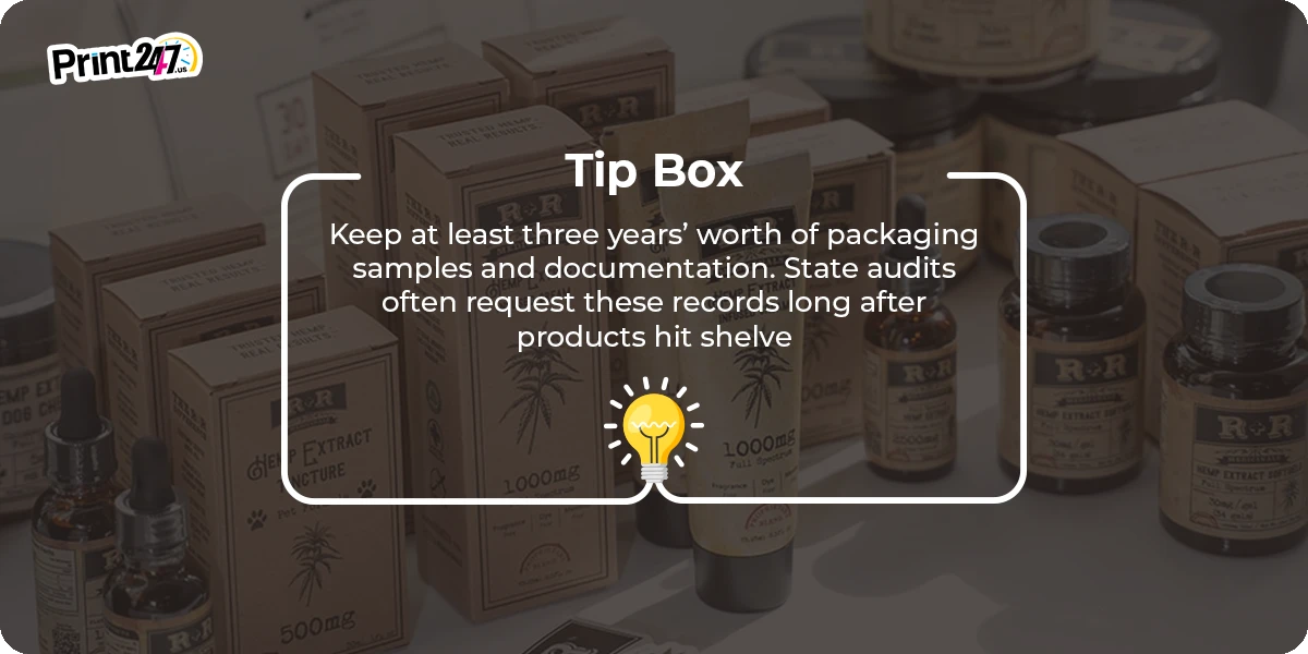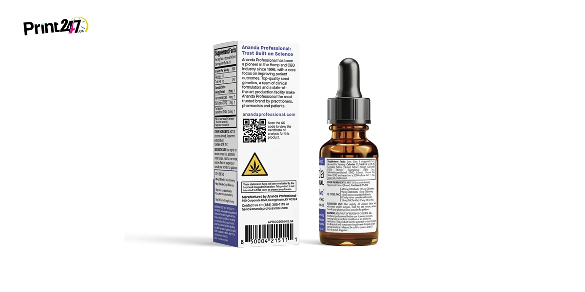 First, work only with CBD packaging vendors like Print247 who specialize in tinctures or cannabis products. They already know CR testing labs, FDA labeling rules, and statewide cannabis requirements.
