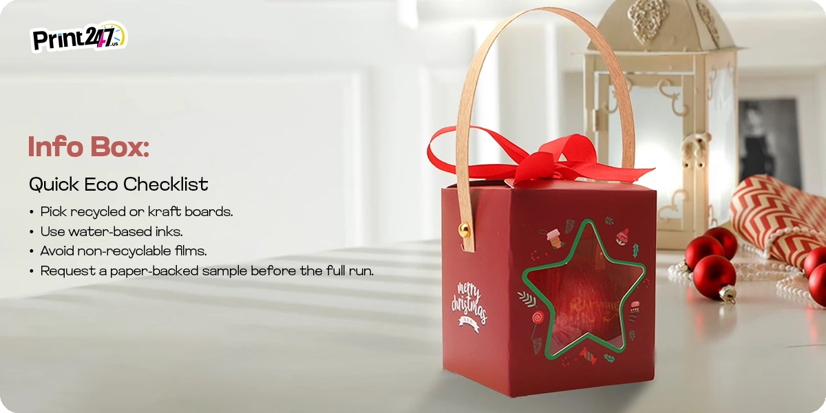 Today, sustainability has become one of the most important requirements for buyers. In recent years, brands have been creating packaging that reduces waste and looks honest on shelves. In the case of businesses, sustainable Christmas box designs can reduce returns, attract eco-conscious clients, and align with their corporate social responsibility goals.