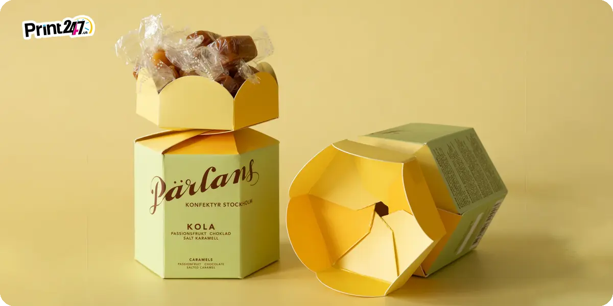 Custom printed twist top boxes are the perfect solution for chocolatiers, candy makers, and artisan bakeries to present their premium products. It comes with a dust-resistant closure that keeps the items inside fresh and protects them from moisture. Their airtight seals and unique aesthetic appeal help differentiate these products on retail shelves.