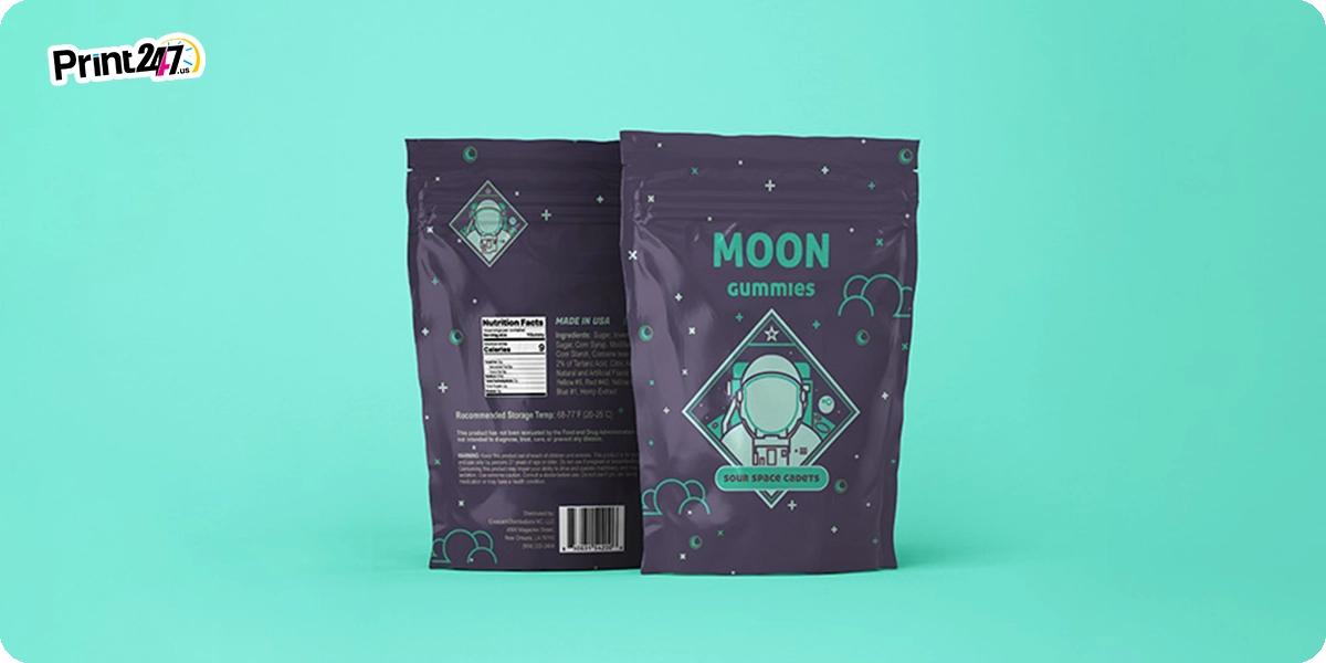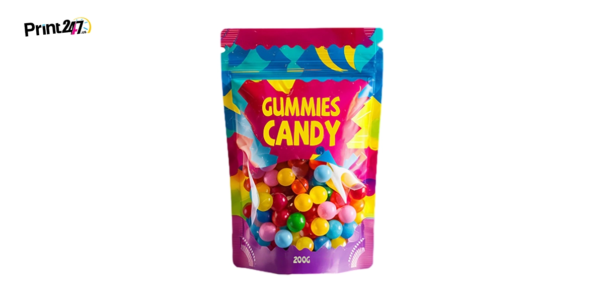 In addition to vibrantly colored boxes, practical and flexible bags Packaging design significantly affects your business's effectiveness as well as cost. At Print247, get gummy standup pouches. High-end aesthetics and stability on the shelf and bags are cheaper and offer better portability.