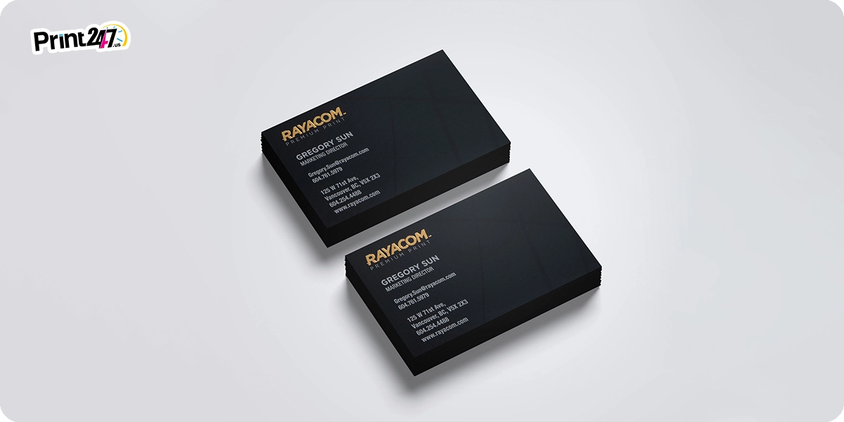Print247 has foil-stamped business cards that come in various shades, ranging from soothing blue to fiery red. The colors you choose can be crucial since they are also used as a method of making cards impactful non-verbal communication. The psychological color has an important effect on the message that your business cards send to your customers.