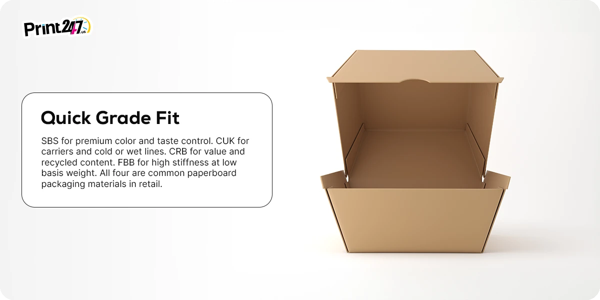 How do I choose between SBS and CRB paperboard?