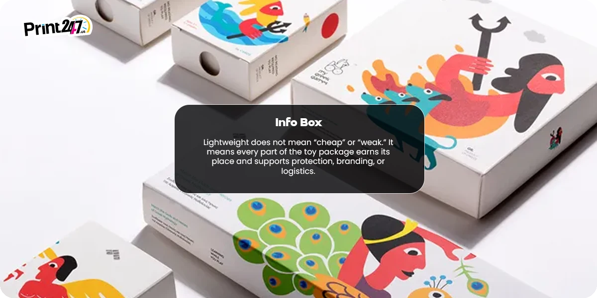 This is where the need for lightweight toy packaging emerges. Brands can lower the costs without risking safety or shelf appeal by using smart structure and lighter materials. This becomes extremely important for you if you need thousands of toy boxes each month or run multiple units.