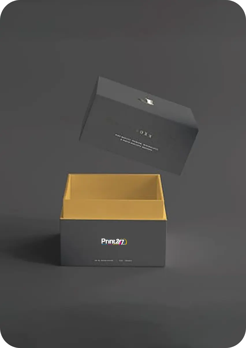 Print 247 is one of the leading manufacturers of all the types of rigid boxes. Similarly, two piece rigid setup boxes are not an exception. We offer neat printing for the luxury range of hard boxes along with an extensive range of premium add-ons at wholesale prices.