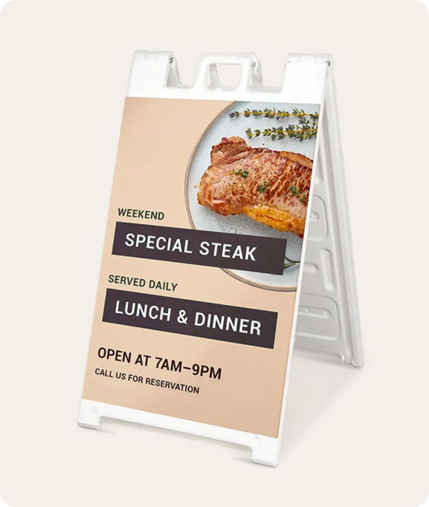 At Print247, we use the latest technology to make signicades signs for ensuring your outdoor advertising needs With the rugged sign of sturdy polyethylene plastic, and are made to hold two 24” x 36” custom prints. You can attract your potential customers by displaying them at an event, trade show, or market through them by placing them at the storefront.